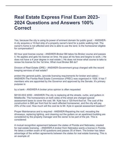 Read Florida Real Estate Express Final Exam Answers Reader